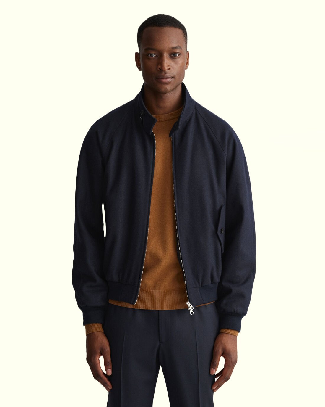 Realizzata in misto lana italiana spazzolata, questa giacca è una versione invernale aggiornata del classico modello Harrington. Con imbottitura riciclata e interno leggermente trapuntato, presenta un colletto dritto con bottoni e interno a costine per un maggiore calore. Il capo è rifinito con due tasche con risvolto e bottone, tasca a filetto interna e il nostro classico passante appendiabiti ricamato sul retro.